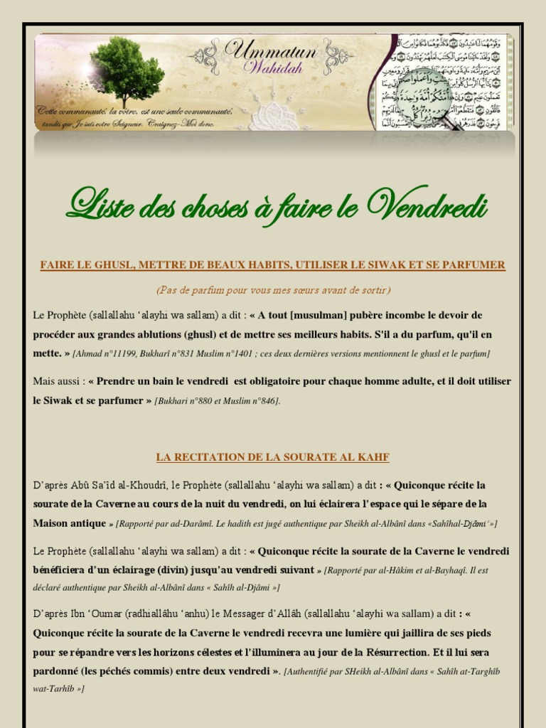 Liste Des Choses A Faire Le Vendredi Ethiques Islamiques