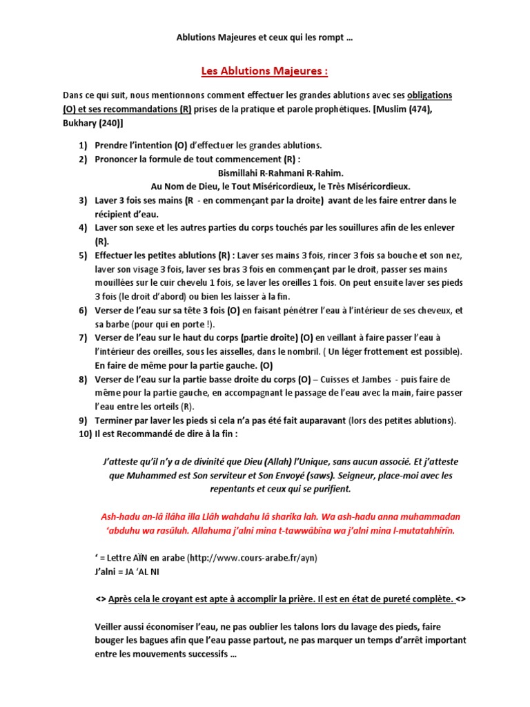 Les Ablutions Majeures Et Invalidations Urine Kostenlose 30